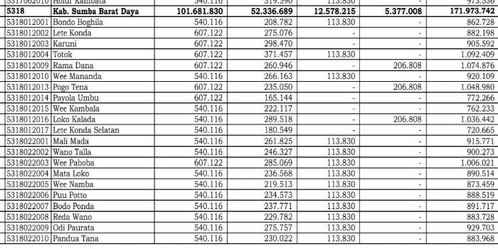 Dana Desa Kabupaten Sumba Barat Daya 2025, Terbanyak Desa Waiholo Hampir Rp2 Miliar Disusul Desa Kendu Wela